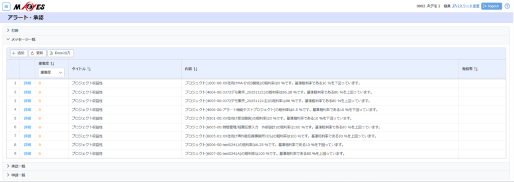 クラウドERP「MA-EYES」に「プロジェクト収益性アラート機能」を追加しました